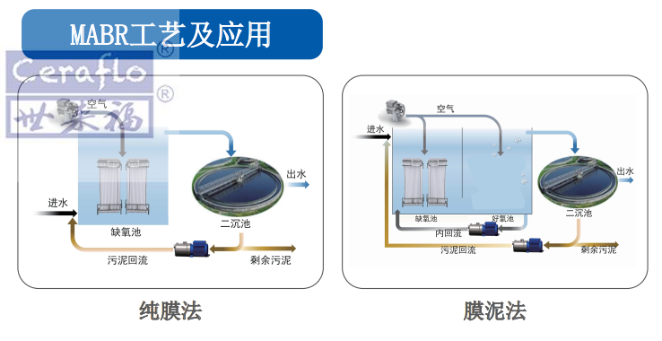 傳統(tǒng)生化工藝,污水通過在厭氧池、缺氧池、好氧池中停留反應(yīng)一定時間后,再進(jìn)行后端處理,該方式主要的問題和局限性在于,處理效果不理想,所需場地較大,然而現(xiàn)今大部分污水處理生化均采用該方式,面對排放標(biāo)準(zhǔn)的提升,傳統(tǒng)工藝的劣勢暴露無遺。MABR作為一種"反向擴(kuò)散"生物膜法,既有生物膜法水處理的優(yōu)點,又具備獨特的優(yōu)勢,尤其是可選擇的純氧供應(yīng)更可進(jìn)一步提高微生物氧化有機(jī)物的能力,并且可以避免揮發(fā)酸等被吹脫而造成二次污染;此外,在實現(xiàn)同步脫氮除碳的過程中,硝化菌更趨向于附著在膜-生物膜界面附近,廢水中的BOD可以更高效的用于反硝化。