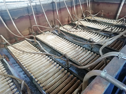 PTFE超親水MBR膜(簾式)實際是一種PTFE中空纖維均質MBR膜,同時具有有機膜的柔性,又有無機膜的強度。與同類中空纖維MBR膜相比,它具有抗拉伸強度大、抗壓強度高,且不易斷絲;也有良好的耐化學腐蝕、耐氧化以及耐光學老化等性能。該產品采用常規的簾式結構,與市場上其它廠商產品可以對接、相互替換。具體樣式如圖所示。