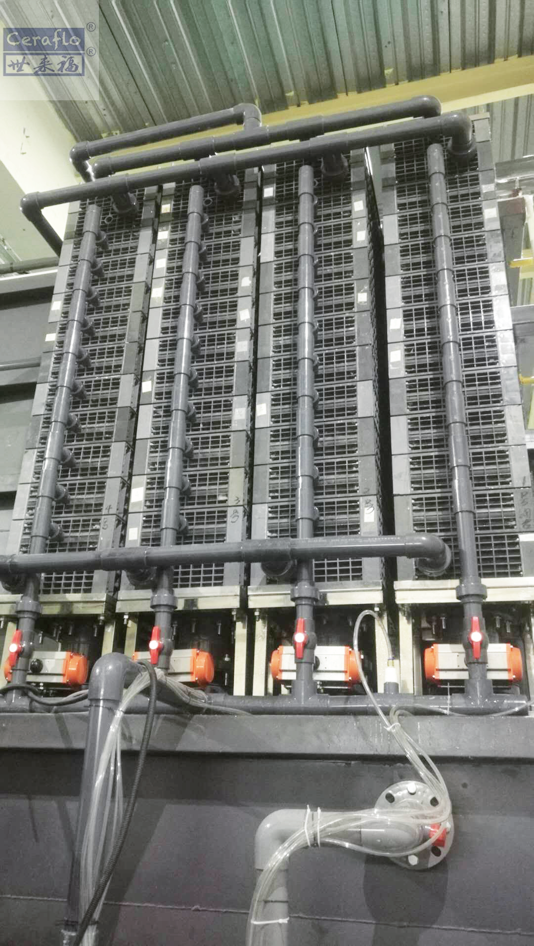 Ceraflo-板式陶瓷膜箱的結構設計擁有發明專利,采用積木組裝的方式安裝,每組過濾膜都是可操作的過濾單元,可輕松地從設備上拆卸下來,便于維修或更換。組裝起來后就成為膜過濾組件的水箱,從模塊化積木法組裝到實現達標排放、方便、快捷。